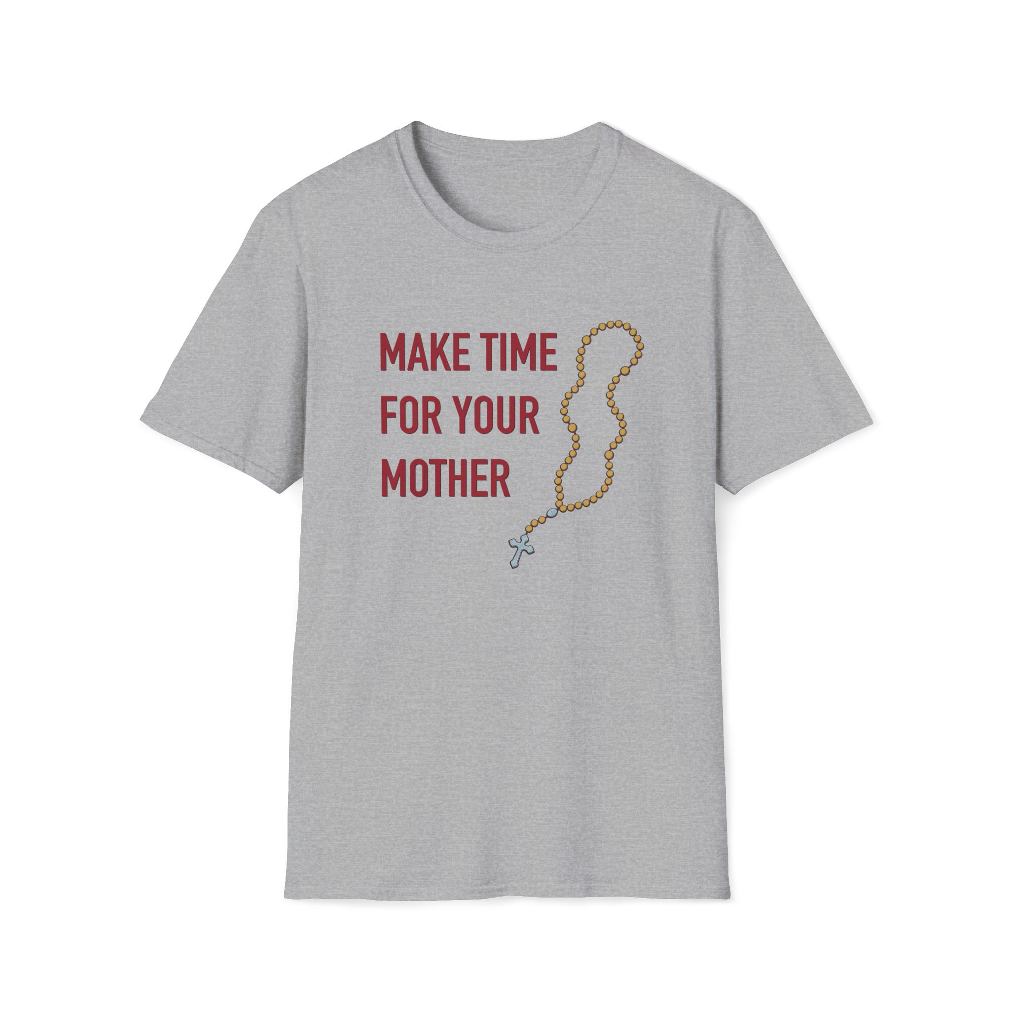 Preach the power of prayer with this Rosary T-Shirt, featuring the heartfelt message “Make Time For Your Mother” alongside an original rosary illustration. Designed to gently point hearts toward Our Blessed Mother, this faith-filled shirt is a joyful reminder to slow down, pick up the rosary, and grow closer to Mary, who always leads us to Jesus. Perfect for Catholic Christians looking for a rosary t-shirt that blends uplifting design with everyday wear, it’s an energetic and inspiring way to share your love for prayer and faith.